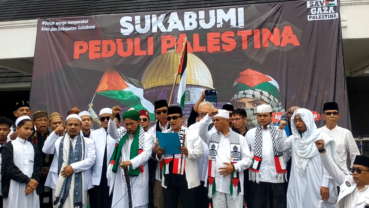 Konflik yang terjadi antara Palestina dengan Israel di Jalur Gaza, Timur Tengah, menuai banyak kecaman umat Muslim dipenjuru Dunia. Seperti yang dilakukan ribuan umat Muslim di Sukabumi.