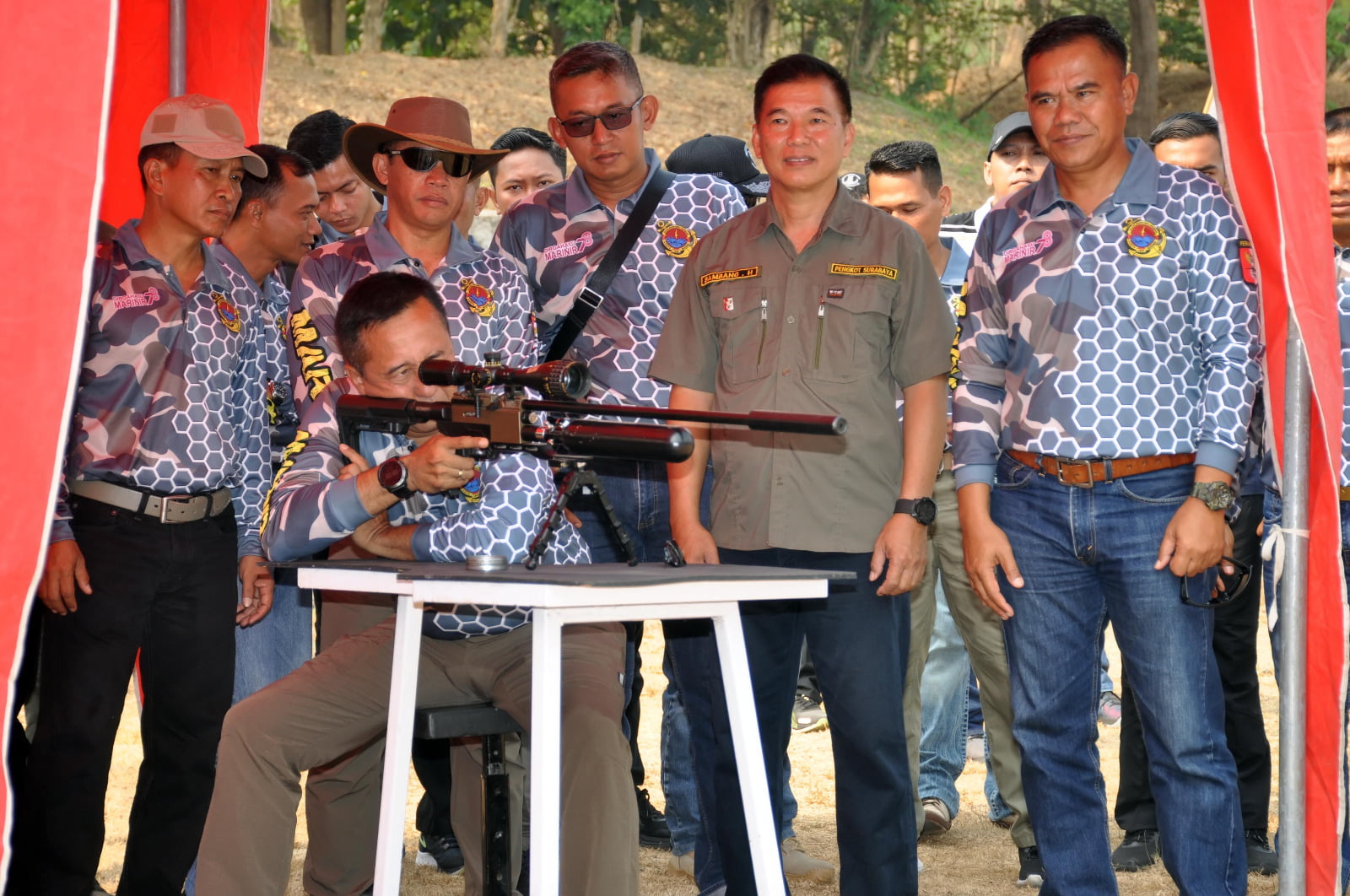 JABARTANDANG.COM,” Dispen Kormar, TNI Angkatan Laut (Surabaya).* Komandan Korps Marinir Mayjen TNI (Mar) Nur Alamsyah, S.E., M.M., M.Tr. (Han) didampingi Komandan Pasmar 2 Brigjen TNI (Mar) Y. Rudy Sulistyanto membuka Lomba Tembak _Air Rifle_ dan memberangkatkan peserta Lomba Berburu Di Lapangan Tembak Internasional FX Soepramono Karangpilang, Surabaya. Sabtu (21/10/2023).