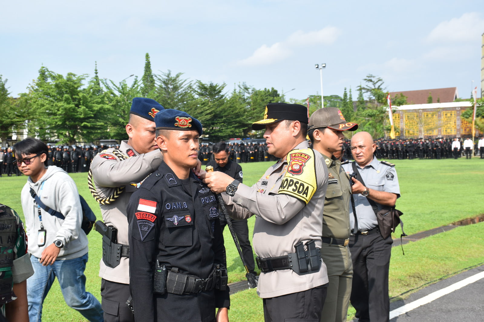 JABARTANDANG.COM,” – Kapolda Kalbar Irjen Pol. Pipit Rismanto, S.I.K., M.H. memimpin langsung pelaksanaan apel gelar pasukan Operasi Kepolisian “Aman Cendikia Kapuas 2023” dalam rangka pengamanan kongres HMI Ke-XXXII dan Munas Komati Ke-XXV yang akan dilaksanakan di Provinsi Kalbar. Apel gelar pasukan yang dilaksanakan oleh Polda Kalbar pada hari ini merupakan wujud pengecekan akhir atas kesiapan personel maupun sarana dan prasarana yang dimiliki oleh Polda Kalbar didalam memberikan pengamanan di Operasi Kepolisian “Aman Cendikia Kapuas 2023” sehingga pengamanan kongres Himpunan Mahasiswa Indonesia (HMI) Ke-XXXII dan Musyawarah Nasional (Munas) Kohati Ke-XXV diharapkan dapat terselenggara denga naman dan lancar. Perlu diketahui bersama mulai tanggal 24 November 2023 sampai dengan tanggal 29 November 2023 Provinsi Kalbar dipercaya menjadi tuan rumah penyelengaraan kongres HMI dan Munas Kohati. Kegiatan kongres HMI dan Munas Kohati ini direncanakan akan dihadiri dan dibuka langsung oleh Presiden Republik Indonesia Ir. H. Joko Widodo dan didampingi oleh tokoh penting lainnya sepert Menteri dan tokoh nasional lainnya yang akan menjadi narasumber pada rangkaian kegiatan kongres HMI dan Munas Kohati nanti. Didampingi oleh Dansatbrimob Polda Kalbar Kbp M. Guntur, S.I.K., M.H. selaku komandan upacara pada apel gelar pasukan pagi hari ini Kapolda Kalbar mengecek secara langsung kesiapan Polda Kalbar seperti melakukan pengecekan personel dalam mengoprasionalkan almatsus yang nantinya akan digunakan oleh personel dalam melakukan pengamanan mengantisipasi kericuhan yang bisa saja terjadi akibat ketidak puasan pada hasil kongres serta unjuk rasa kelompok tertentu atas kehadiran pejabat negara terhadap kebijakan pemerintah. Operasi Kepolisian “Aman Cendikia Kapuas 2023” dilaksanakan selama 10 hari mulai dari tanggal 22 November sampai dengan tanggal 1 Desember 2023 yang melibatkan TNI dan instansi terkait serta melibatkan 2368 personel yang disebar diempat daerah yaitu Kota Pontianak, Kabupaten Kubu Raya, Kabupaten Sanggau dan Kabupaten Ketapang.