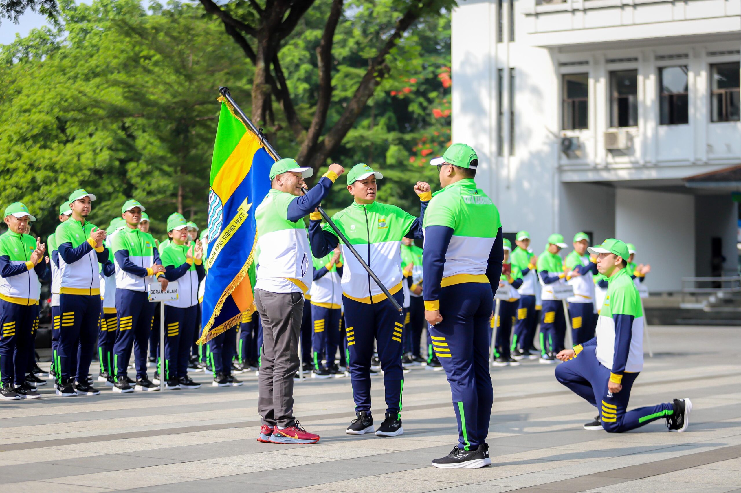 JABARTANDANG.COM,” – Pj Wali Kota Bandung, Bambang Tirtoyuliono melepas 279 atlet yang akan berlaga pada Pekan Olahraga Pemerintah Daerah (Porpemda) tahun 2023 di Balai Kota, Jumat 24 November 2023.