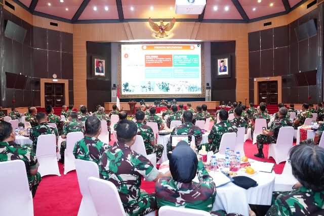 Di depan peserta acara, Panglima TNI menyampaikan dihadapkan pada lingkungan strategis nasional ada 3 hal yang dihadapi sekarang ini, yaitu Kelompok Separatis Teroris, Siaga Bencana Alam, dan Pemilu. Seiring hal tersebut guna terlaksana tugas pokok TNI yang telah diamanatkan oleh konstitusi, Panglima TNI mengusung Visi “TNI Yang Prima” yaitu Profesional, Responsif, Integratif, Modern dan Adaptif.