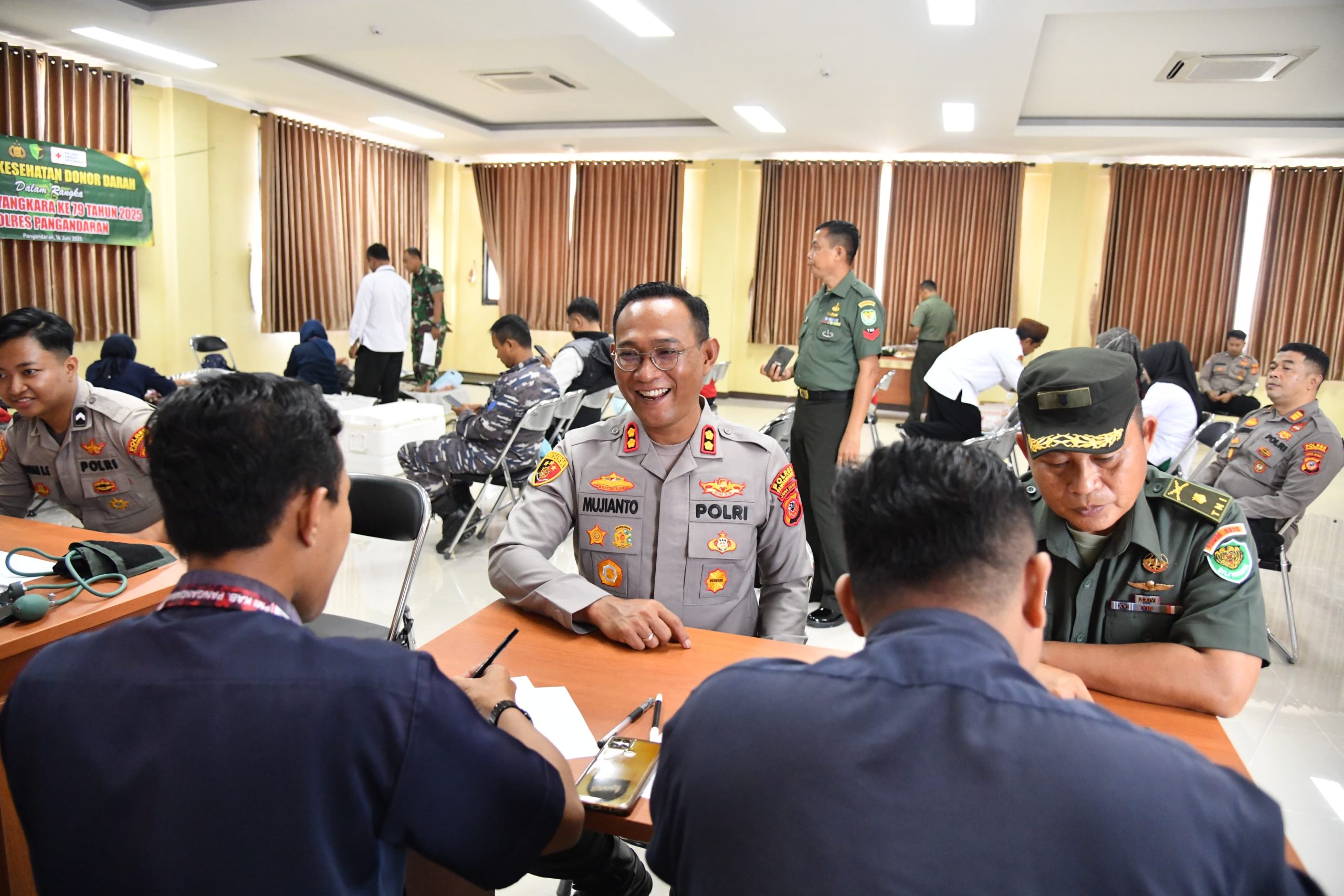 Pangandaran – Jabartandang.com,” – Senin, 17 Juni 2025 Dalam rangka menyambut Hari Ulang Tahun Bhayangkara ke-79, Kepolisian Resor (Polres) Pangandaran menggelar kegiatan bakti sosial donor darah yang berlangsung di Mako Polres Pangandaran yang baru, berlokasi di Desa Wonoharjo, Kecamatan/Kabupaten Pangandaran. Kegiatan kemanusiaan ini turut dimeriahkan oleh keikutsertaan unsur TNI, Bhayangkari, serta masyarakat umum yang dengan antusias mendonorkan darahnya.